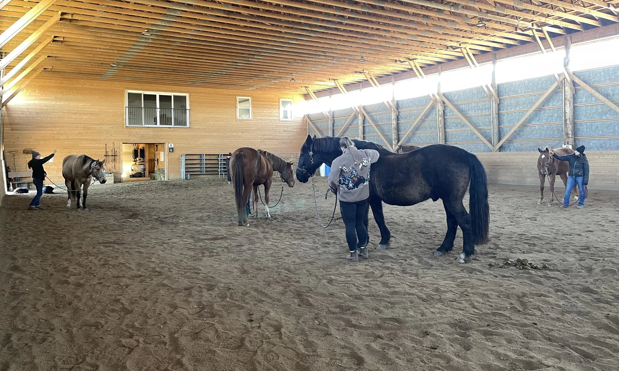 Barn, Indoor or enclosed outdoor area (weather depending) with enough space for a small group to safely work around horses